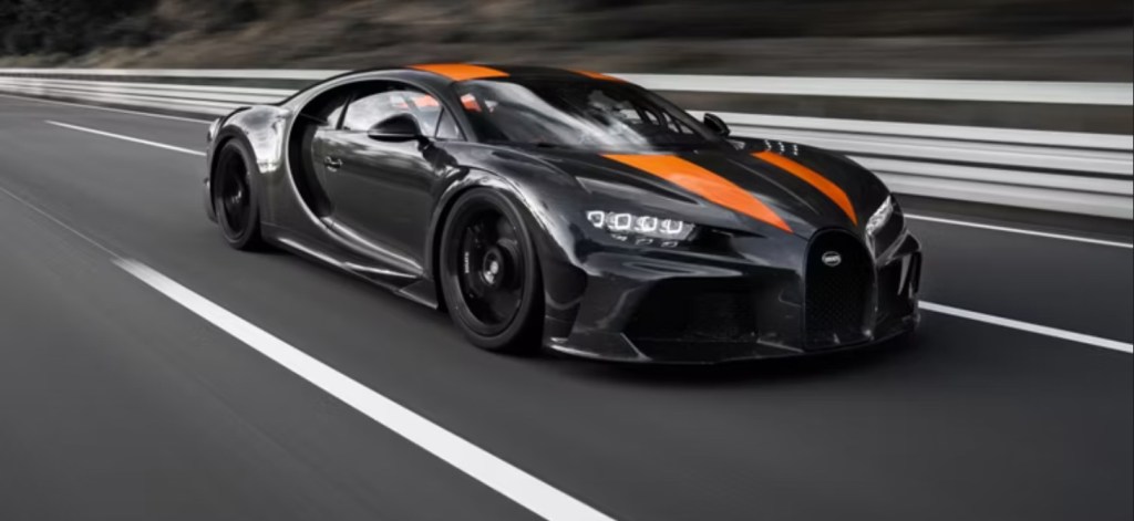 The Bugatti Chiron Super Sport 300+ was a production model to celebrate a modified prototype of the Bugatti Chiron. Hitting a top speed of 304mph (489kmh). The car has a Quad-turbo, 8.0-liter W-16 which produces 1,578 horsepower. The car costs 3.8 million dollars